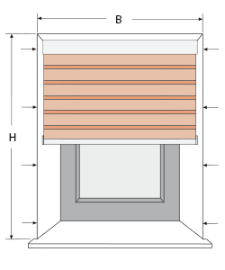 H = Stoffjalousie-Höhe + einschließlich gewünschtem Überstand.